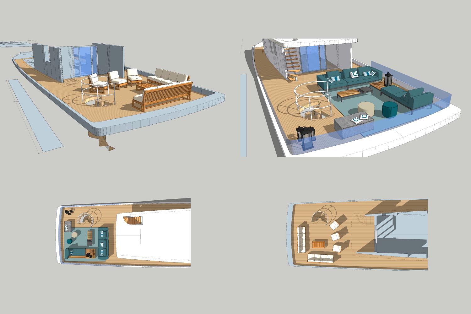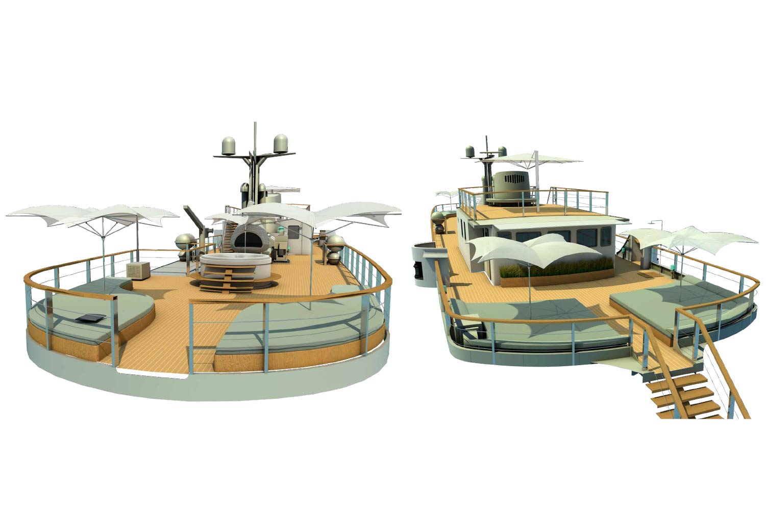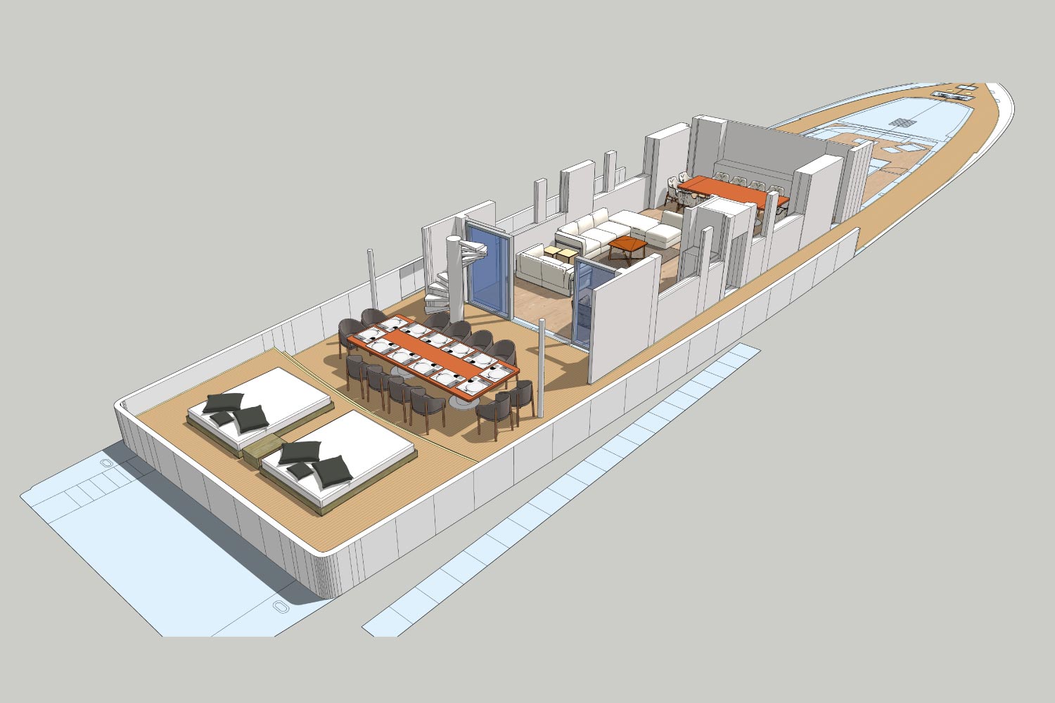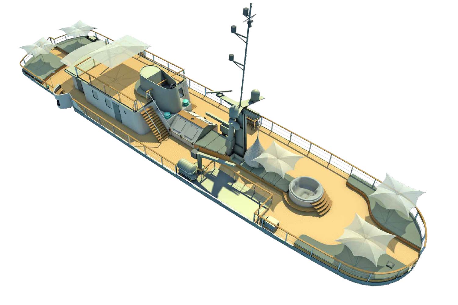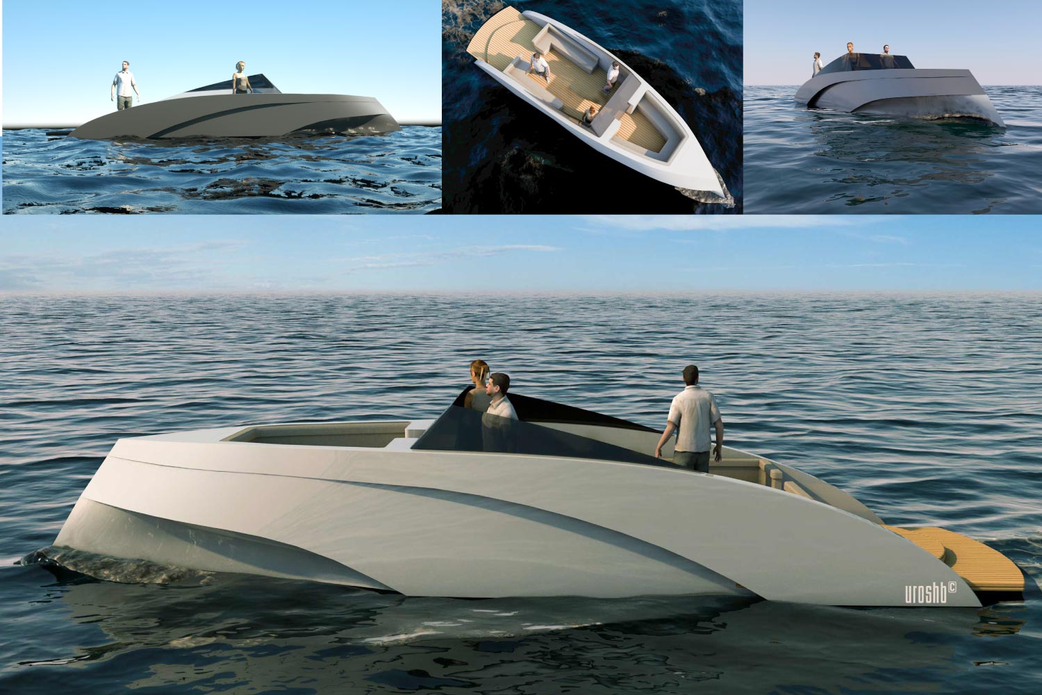 THE IDEA WAS TO DESIGN EXTREMELLY LOW PROFILE OF THE TENDER TO FIT IN A SIDE GARAGE OF THE CRUISE SHIP AND CAN BE EASILY ADAPTED TO FIT DIFFERENT NEEDS AS A SPORT, FUN, TRANSPORT ETC.